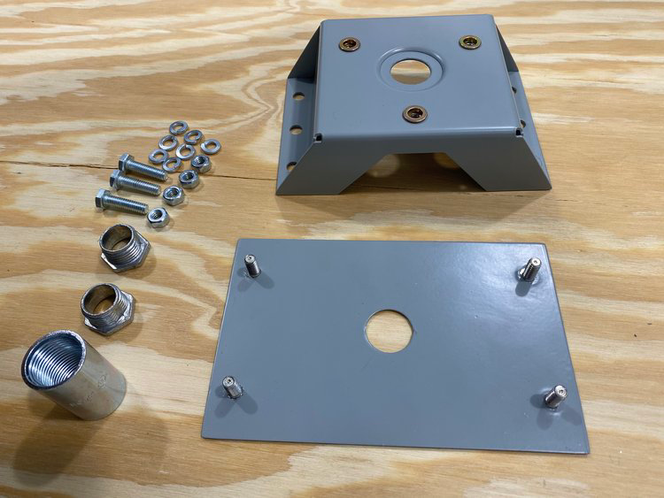 ELB Brackets are designed to mount a dusk to dawn style light centered on the rib of R/PBR metal siding; thus eliminating the need to mount lights off center. Six mounting holes allow for various mounting options. Optional ELB Bracket Kit includes a backer plate, eliminating the need to screw into a stud or girt. Electrical fittings are also included in the kit to keep everything weatherproof. Light attachment Option 1 and Option 2 include ΒΌ-20 threaded nutserts, allowing lights with matching hole patterns to simply bolt on. If you prefer to drill your own pattern, choose Blank. ELB Brackets are made of strong 16 gauge steel, making them capable of supporting even the heaviest of lights.