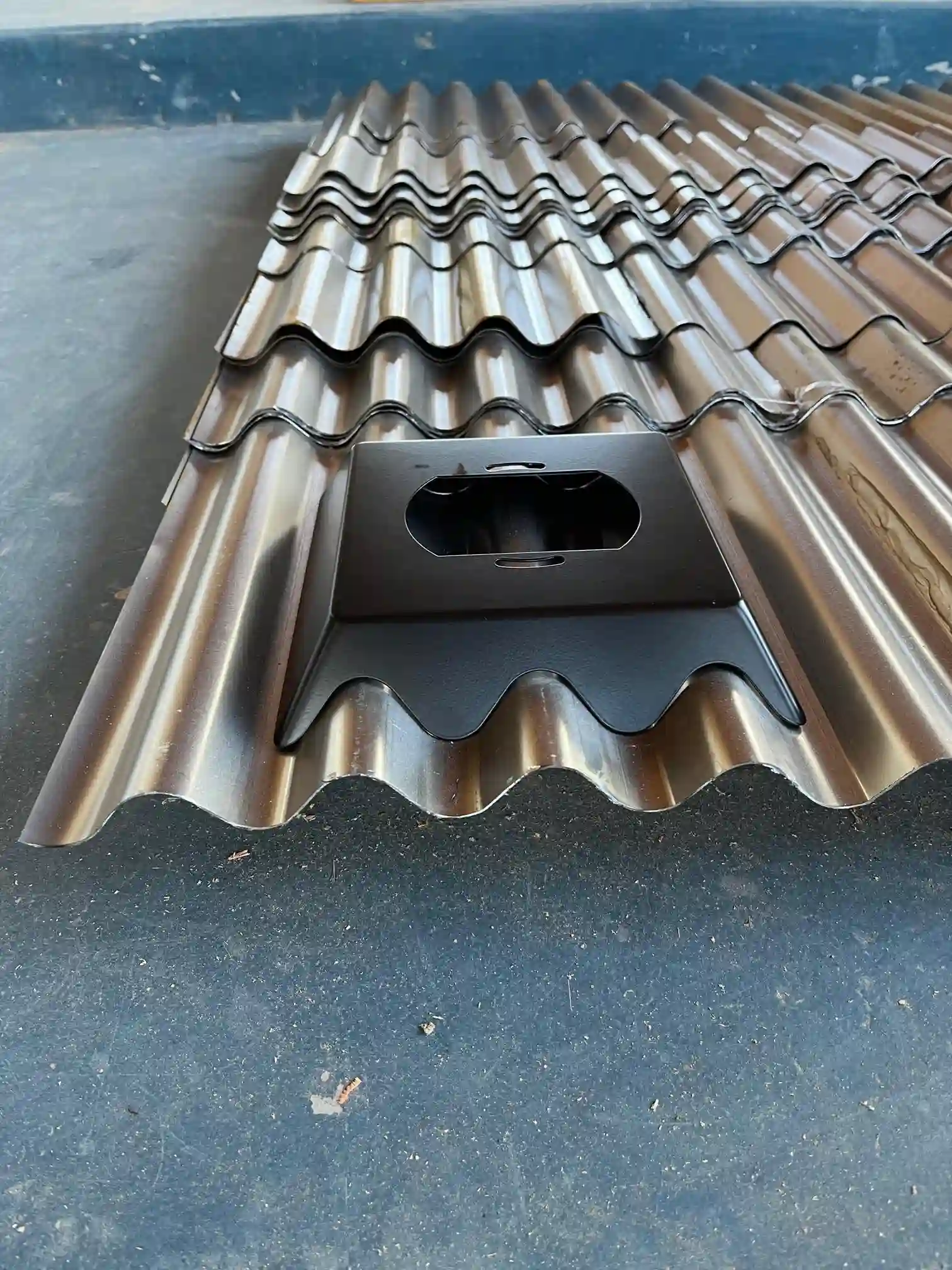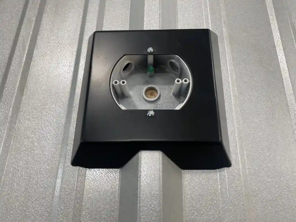 Everett Mounting Bases match the profile of metal wall panels and provide a flat base to mount lights with up to a 6 inch diameter base. Designed to attach to a round weatherproof electrical box. Mounting bases can be ordered centered on the high rib (On Rib), centered between the ribs (Off Rib), or offset in 1/2 inch increments. For offset Mounting Bases, measure from the center of the high rib to the desired center location of the Mounting Base. Please specify Panel Type, Rib Location, and Color.